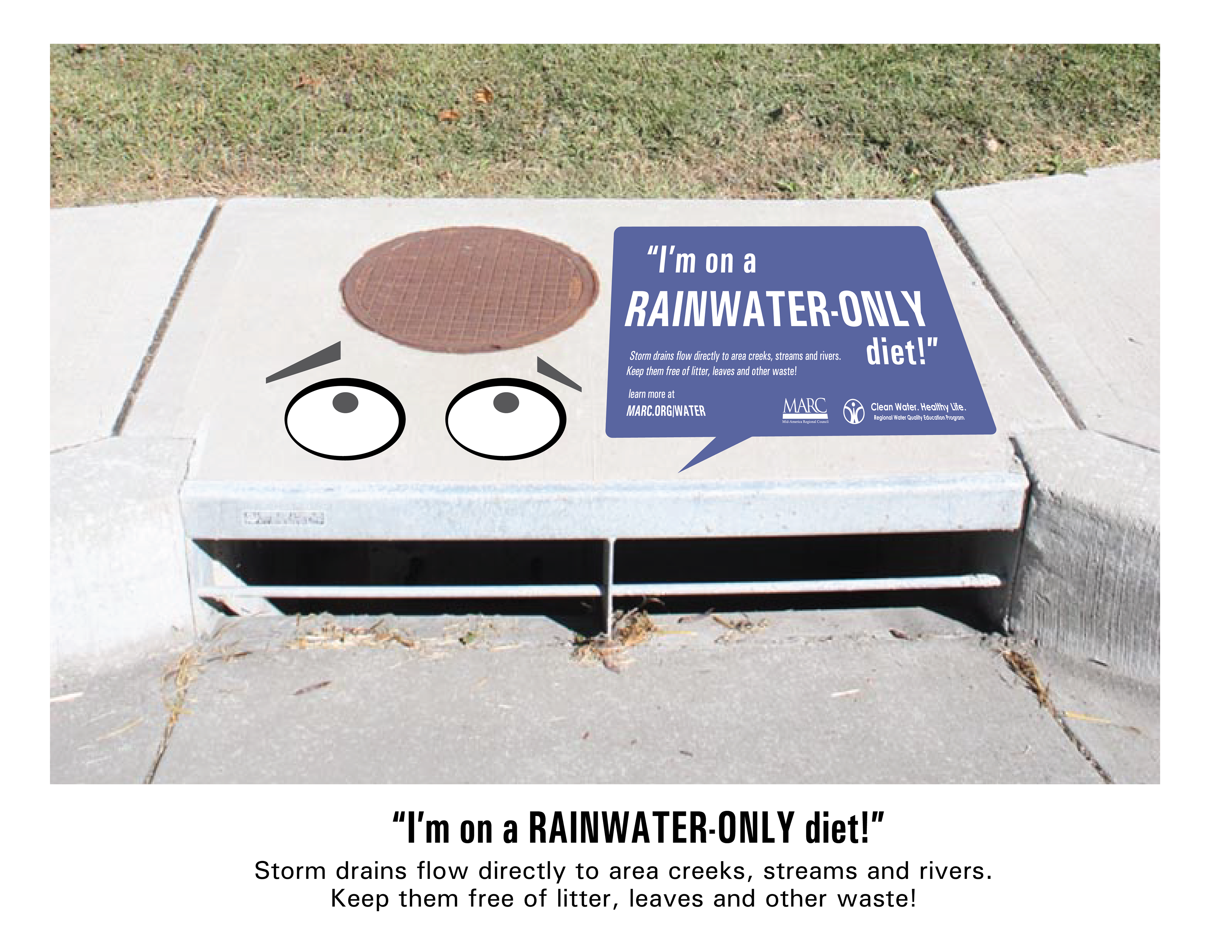 As part of a regional effort to increase awareness of the connections between storm drains and healthy water, I developed these conceptual mockups for a "storm drain sentiments" campaign. The idea was to play upon the mouth-like design of the drains, giving them “voices” to talk about what sort of pollutants often are deposited inside them. The word bubbles and eyes would be weatherproof decals temporarily affixed to the top of drains located in high-traffic pedestrian areas throughout the region where passers-by could read the messages and gain a greater understanding of storm drains’ relationship with local waterways. The campaign was not implemented, largely due project funding issues; however the proposal was well received by members of the planning committee, which consisted of representatives from local municipal public works departments, environmental organizations, and water utilities.